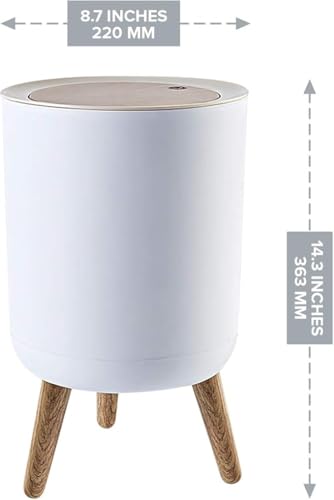 Generic - سلة مهملات علوية بضاغط بتصميم نورديك بريمو سبلاي، أبيض، تصميم اسكندنافي عصري، 7 لتر مع أرجل خشبية، سلة مهملات للمطبخ والحمام، 36.3 × 22.1 سم