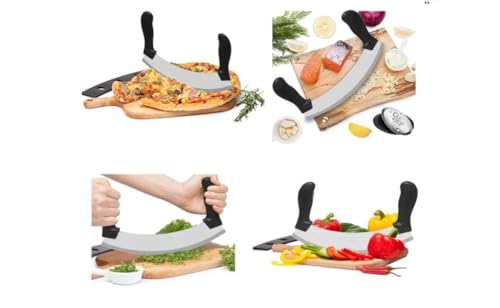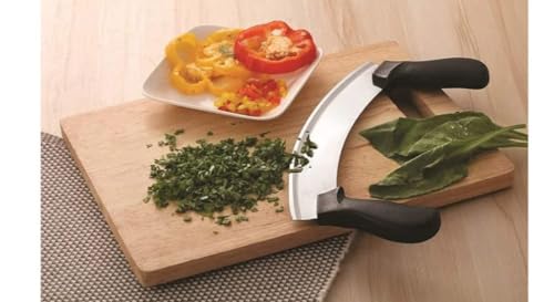 Generic - جيني قطاعة اعشاب وخضروات احترافية للمطبخ، سكين بشفرة مزدوجة من الستانلس ستيل مع مقبض مريح، لوح تقطيع خشبي متضمن. فلو