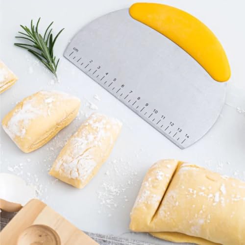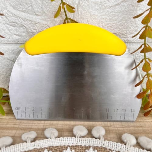 Generic - مكشطة عجين احترافية من الفولاذ المقاوم للصدأ مع مسطرة 14 سم، مقبض مريح بلون اصفر، أداة للخبز بالمطبخ للقياس والتقطيع.