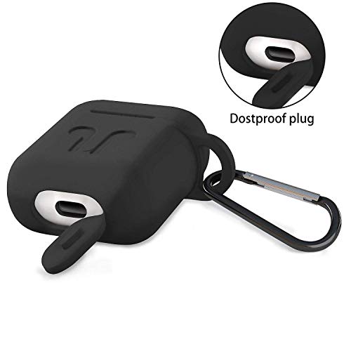 Generic - حافظة حماية من السيليكون مع حلقة تعليق لإكسسوارات سماعات آبل ايربودز من جينيريك، لون أسود