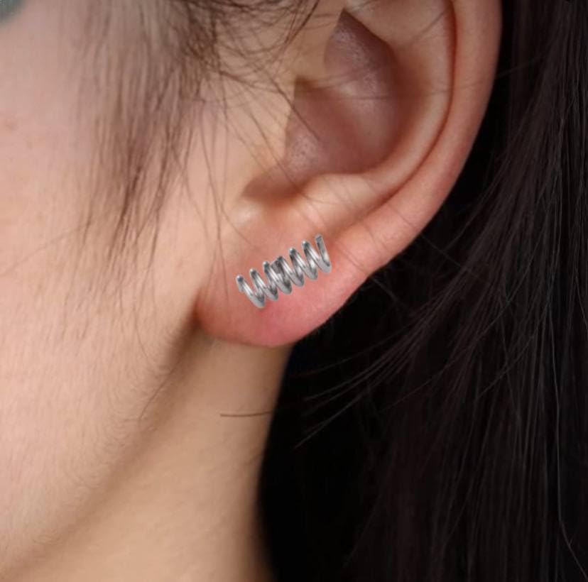 generic - حلقان كبس فضية اللون على شكل قضيب بتصميم بانك بنمط عنكبوت وعقرب للأذن المثقوبة للنساء, معدن, بدون أحجار كريمة