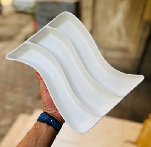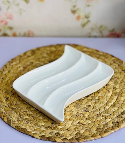 - تصميم أنيق: مصمم بسطح محيطي فريد مموج بأقسام متعددة لتقديم منظم، ومزود بقاعدة مصممة علي شكل سلة منسوجة مزخرفة لمزيد من الجاذبية البصرية.