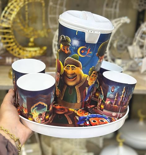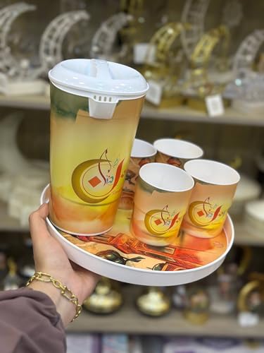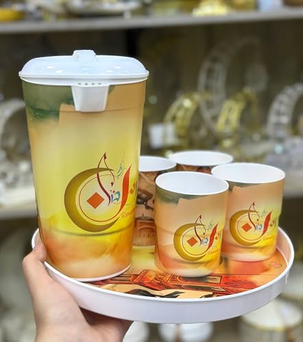 Generic - جيني طقم تقديم مشروبات رمضان مع ابريق وصينية و4 اكواب، تصميم احتفالي