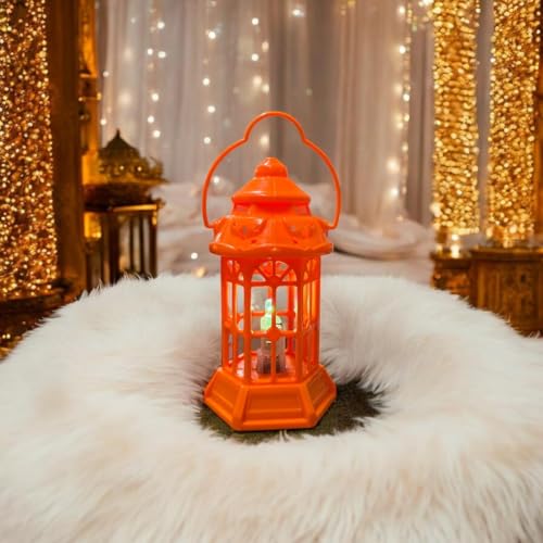 • الإضاءة: فانوس ليد يعمل بالبطارية يضفي توهجًا دافئًا ومحيطًا للاحتفالات والديكور المنزلي.