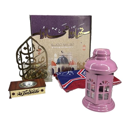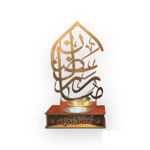 Generic - مجموعة هدايا رمضان مصنوعة من الخشب مع فرع نور زينة، 7 قطع