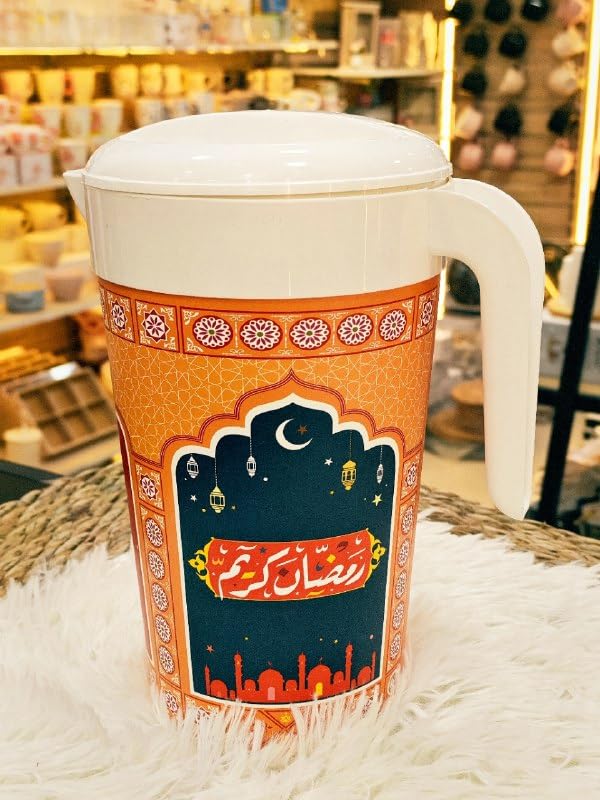 - سعة كبيرة: يحمل إبريق الماء البلاستيكي هذا 2 لتر من الماء، مما يجعله مثاليًا لتقديم المشروبات أثناء تجمعات الإفطار واحتفالات شهر رمضان