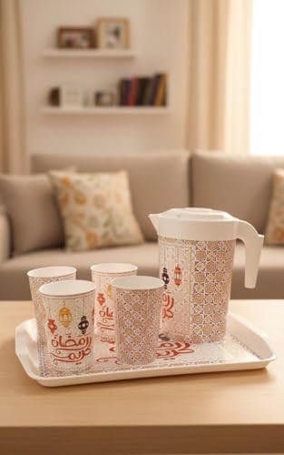 - مجموعة تقديم كاملة: تتضمن مجموعة تقديم الطعام الأنيقة ذات الطابع الرمضاني إبريق واحد و4 أكواب مطابقة، مثالية لتقديم المشروبات أثناء تجمعات الإفطار والاحتفالات الاحتفالية