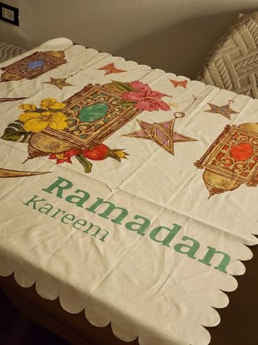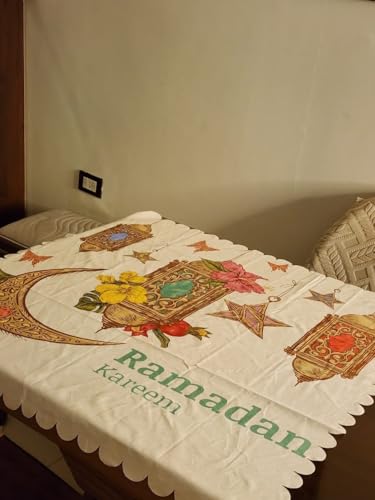 - حجم مربع مثالي: يبلغ مقاسه 90 سم × 90 سم، مثالي للطاولات المربعة أو المستديرة الصغيرة والمتوسطة الحجم أو طاولات القهوة أو كطبقة زخرفية لاحتفالات رمضان