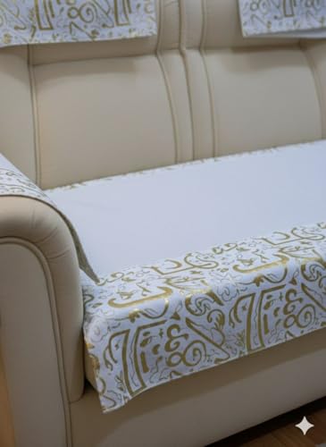 Generic - أغطية أريكة بنمط رمضان بتصميم مكرمية، طقم من 10 قطع من القماش شديد التحمل، تتضمن كنبة بطول 2 متر وكنبة بطول 1.5 متر وكرسيين و6 مخدات (لون بيج)