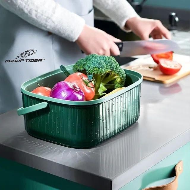 Generic - مصفاة غسيل خضروات وفواكه مستطيل من البلاستيك طبق غسيل اكريليك، 2 طبقة، تي كيه