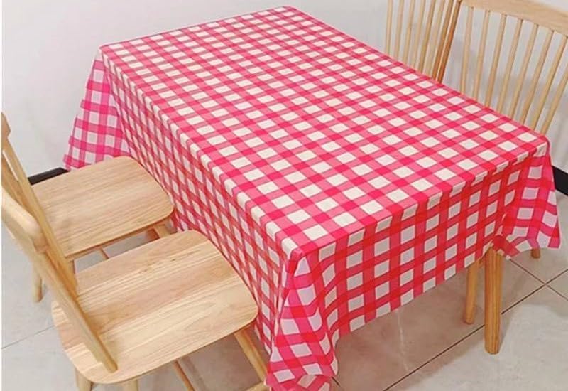 Generic - جيني مفرش طاولة بنقشة مربعات باللونين الاحمر والابيض، قماش مقاوم للماء، 137 × 274 سم