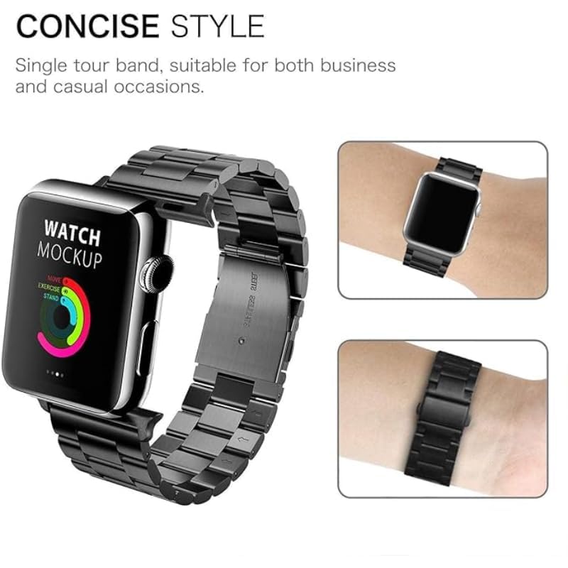 Generic - سوار بديل معدني متوافق مع ساعة سلسلة ابل 42 ملم، مصنوع من الفولاذ المقاوم للصدأ، لون أسود