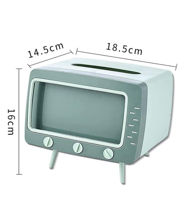 Generic - حامل علبة مناديل بتصميم تلفزيون رترو بلون أبيض ورمادي مصنوع من الاكريليك مع حامل موبايل مدمج لسطح المكتب بتصميم عصري للمنزل والمكتب