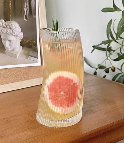 - هيكل من الزجاج الشفاف: مصنوعة من زجاج شفاف عالي الجودة يسمح للألوان الطبيعية لمشروباتك بالتألق من خلال التصميم البارز والمميز للأكواب