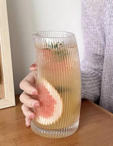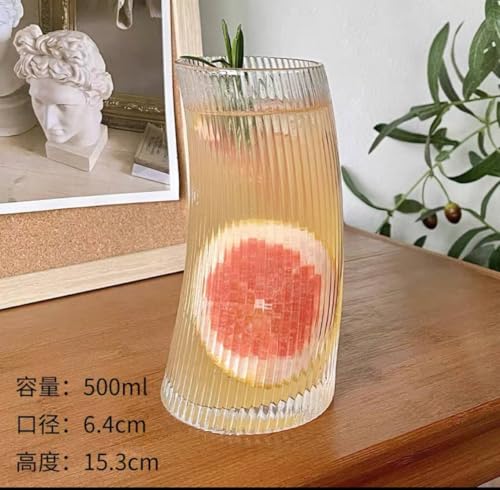 Generic - أكواب شرب زجاجية مضلعة من جينريك، نمط عمودي شفاف، سعة 520 مل، مجموعة مكونة من 6 قطع