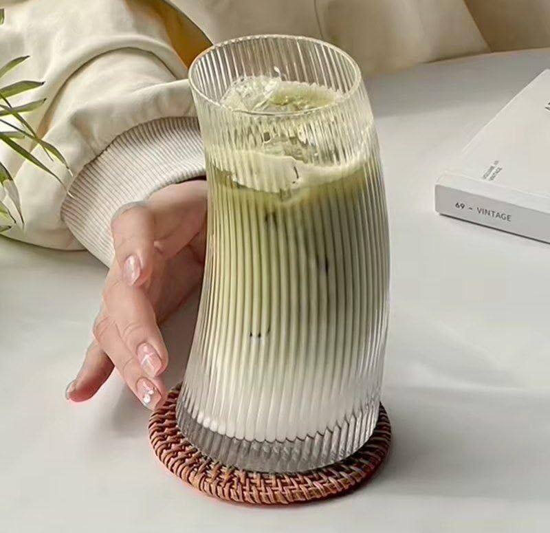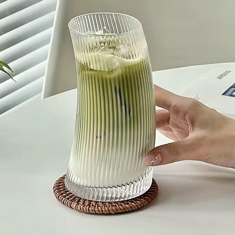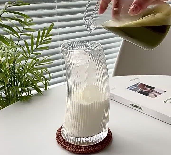 - تصميم أنيق: تتميز أكواب الشرب الزجاجية المضلعة بنمط مخطط عمودي متطور يضيف جمالية عصرية إلى مجموعة أدوات الشرب الخاصة بك