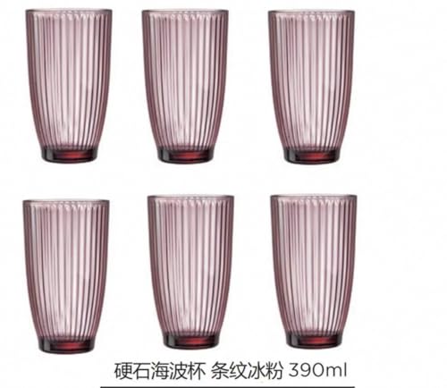Generic - جيني طقم اكواب زجاجية مضلعة، ارجواني، سعة 390 مل، 6 قطع كؤوس عصير ومياه. روم