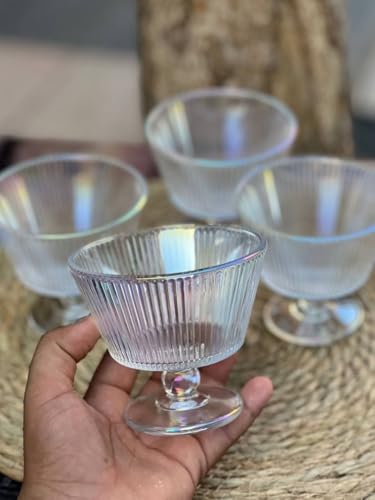Generic - طقم أطباق عميقة زجاجية مضلعة للجيلي والآيس كريم والفواكه، بولات حلويات، شفاف، 6 قطع، A2
