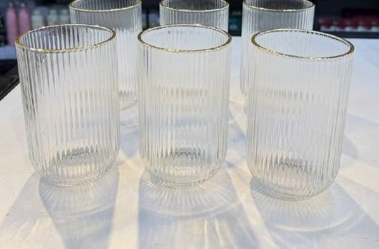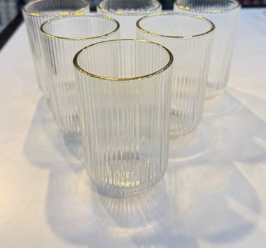 Generic - جيني طقم اكواب زجاجية مضلعة بحافة ذهبية، اكواب شرب شفافة مزخرفة من 6 قطع