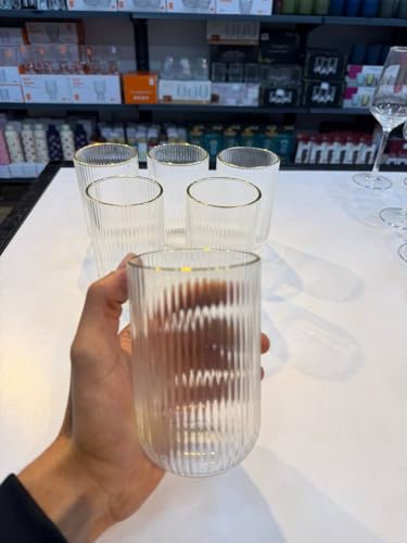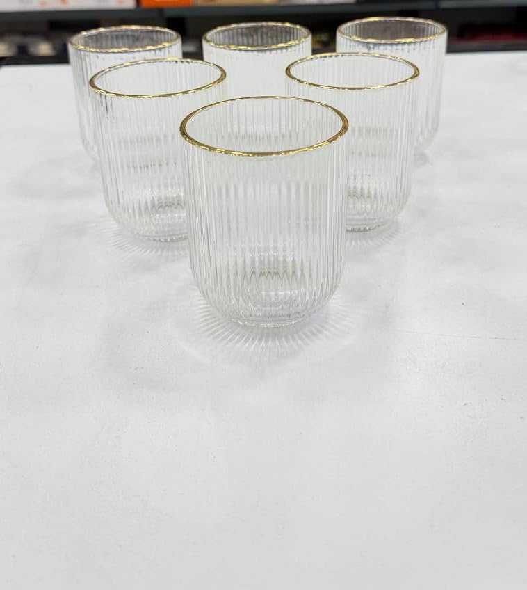 Generic - جيني طقم اكواب زجاجية مضلعة بحافة ذهبية، ادوات شرب شفافة نسيجية، 6 قطع