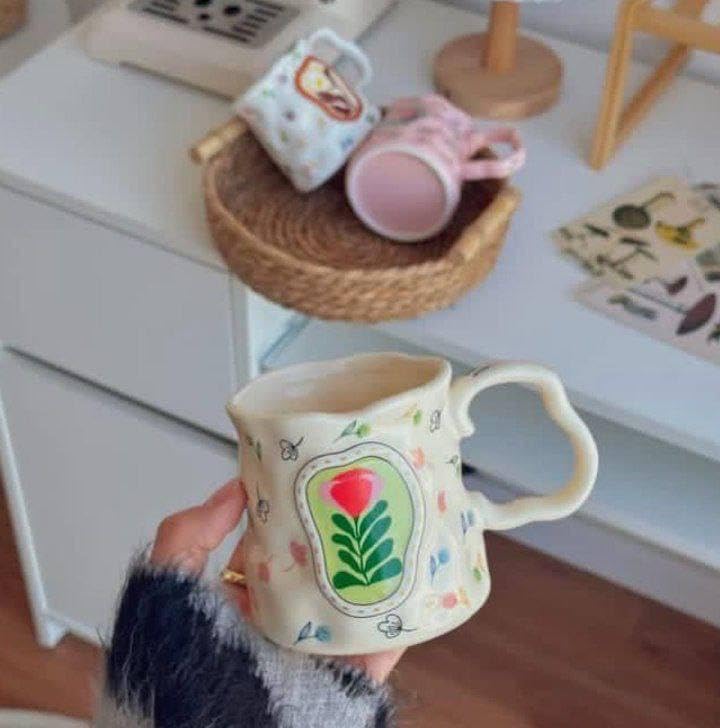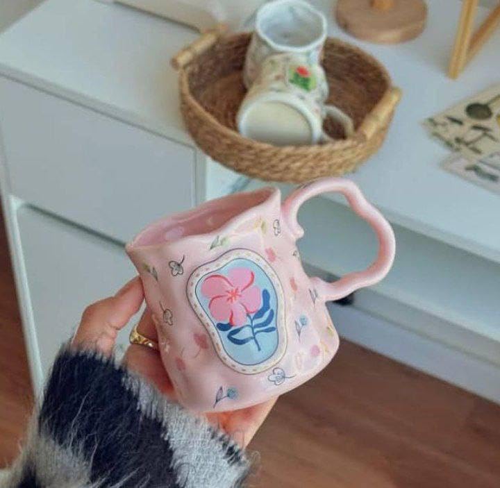 - تصميم فريد: كوب سيراميك ساحر يتميز بنمط وردة وزهور مرسومة يدويًا بلون كريمي مع زخارف نباتية مزخرفة لإضفاء لمسة فنية غريبة على مجموعة أدوات الشرب الخاصة بك