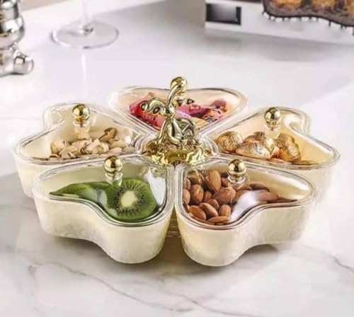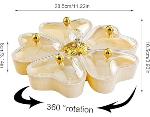 Generic - مجموعة أطباق تقديم دوارة بتصميم قلب، 5 مساحات تخزين مع أغطية، حاوية وجبات خفيفة من الاكريليك الشفاف مع لمسات ذهبية