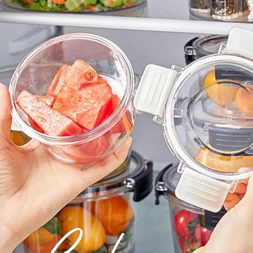 Generic - حاوية تخزين طعام دائرية من الأكريليك مع غطاء مشبك، للخضروات والجبن والصلصات، شفافة، حجم صغير