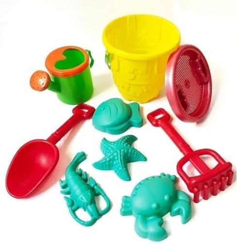 - جردل بحر دائري بتصميم متعدد الأضلاع فريد مع مجموعة متنوعة من أدوات الشاطئ