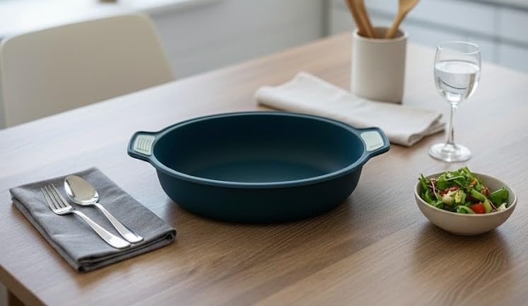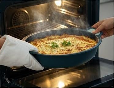 - مقابض مزدوجة مريحة: تتميز بمقابض جانبية مريحة مع وسادات قبضة مزخرفة للتعامل الآمن والمريح عند نقل القالب داخل وخارج الفرن