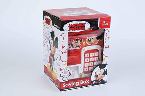 GHAZAL - خزنة مع قفل ببصمات الاصابع بتصميم ميكي مزودة بصوت وضوء - لون احمر، بلاستيك