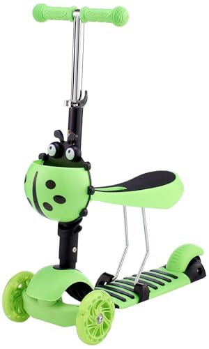 Generic - سكوتر اطفال 3 في 1 عجلات مضيئة اخضر - 6 سنوات هيكل يحتوي على الألومنيوم