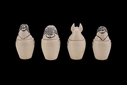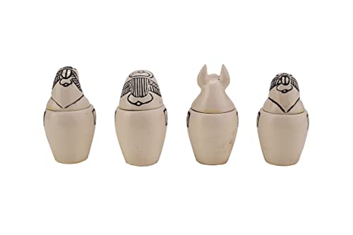 Generic - مجموعة من 4 برطمانات كانوبيك بتصميم فني مصري بنمط ابناء حورس، مصنوعة من الحجر الجيري في مصر.، أبيض