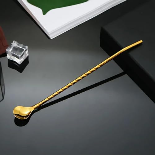 Generic - طقم ملاعق كوكتيل ذهبية بيد ملتوية، 7 قطع، شاليمار