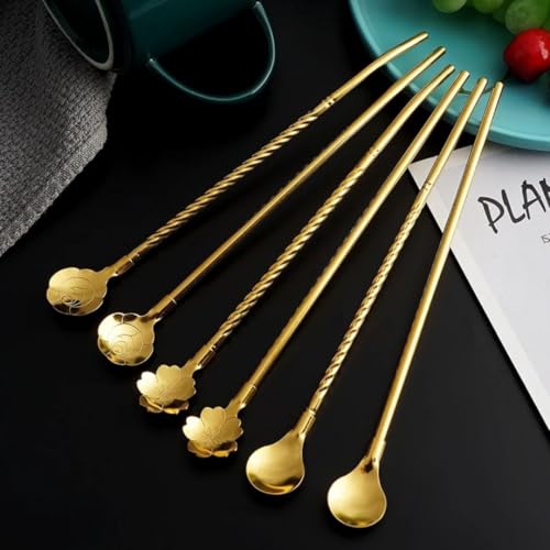 - تصميم أنيق: ملاعق كوكتيل مطلية بالذهب تتميز بمقابض ملتوية مزخرفة ونهايات مصممة بعناية على شكل زهور وقطرات دمعة لعرض أنيق.