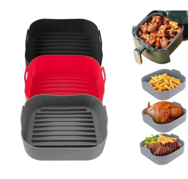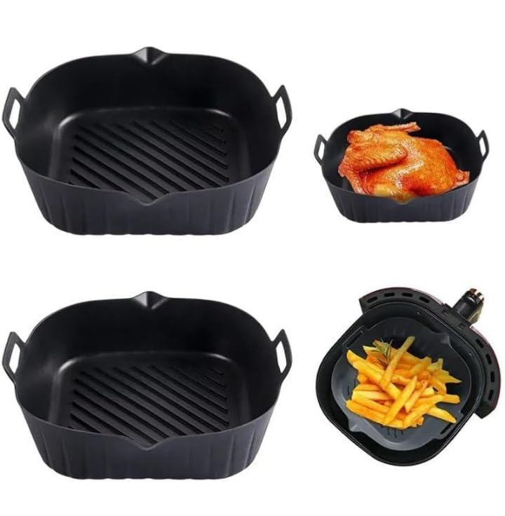 Generic - جيني مجموعة قوالب خبز للمقلاة الهوائية من السيليكون، مقاس كبير، لون رمادي