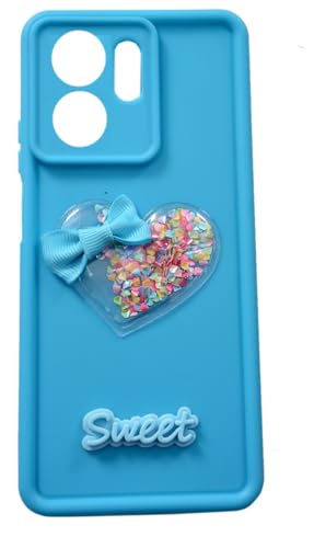 Generic - جراب حماية من السيليكون مضاد للصدمات بحماية للكاميرا ومزين بقلب ثلاثي الأبعاد ومتوافق مع موبايل انفينيكس سمارت 9 / هوت 50i - أزرق سماوي