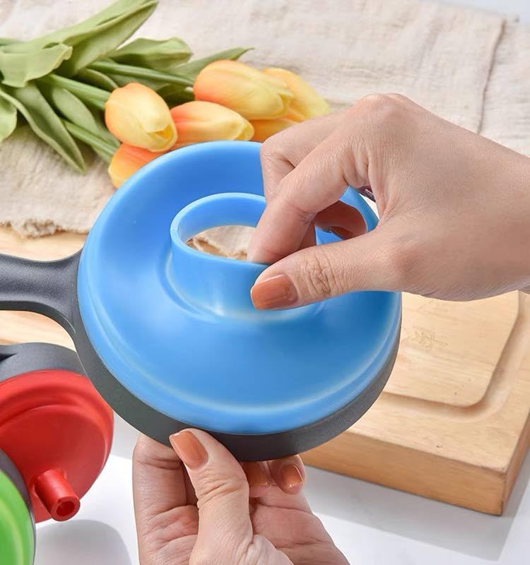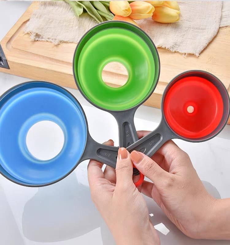 - مجموعة متعددة الاستخدامات: ثلاثة أقماع سيليكون مختلفة الأحجام بألوان الأزرق والأخضر والأحمر لمهام المطبخ المختلفة ونقل السوائل.