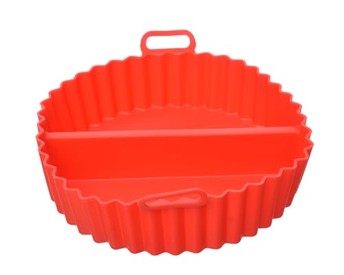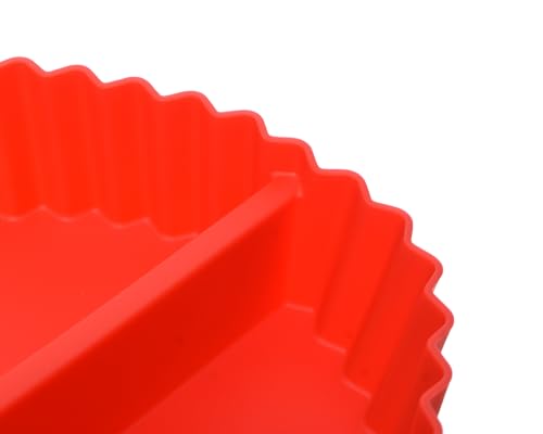 Generic - صينية مقلاة هوائية متوسطة الحجم من السيليكون مع يد سيليكون صغيرة ومقسمة إلى نصفين لإضافة المزيد من العملية، لون أحمر