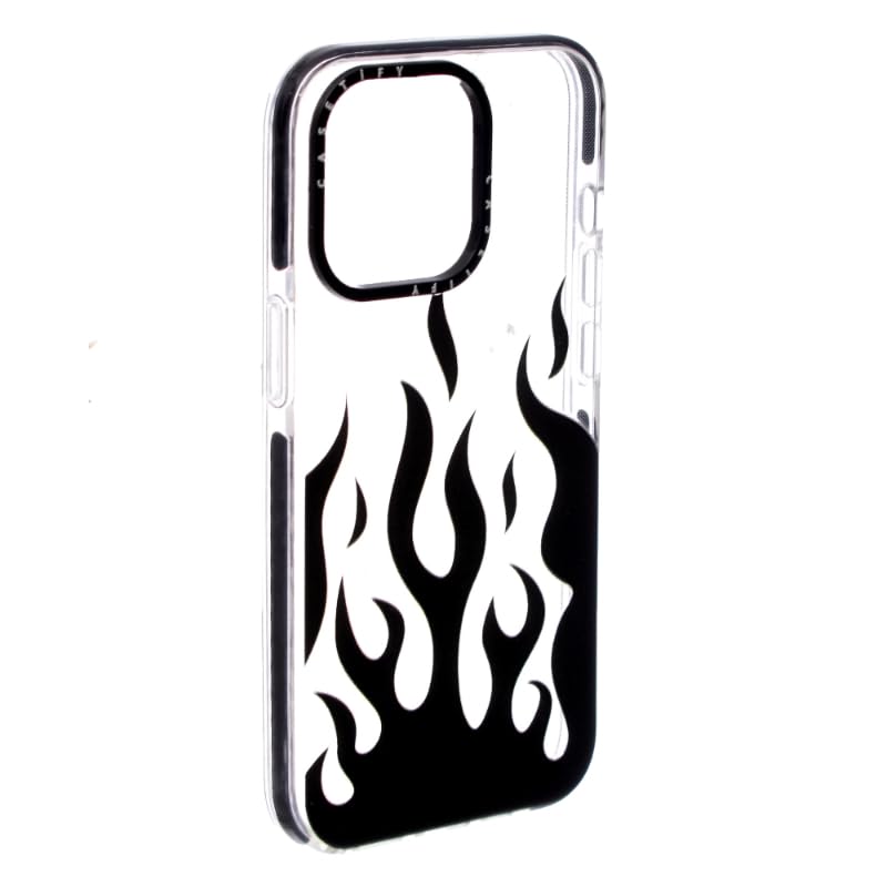 Generic - جراب حماية من السيليكون بتصميم حريق مع سلسلة ملونة فاخرة وحواف آمان لموبايل ايفون 13 برو - بلون أسود