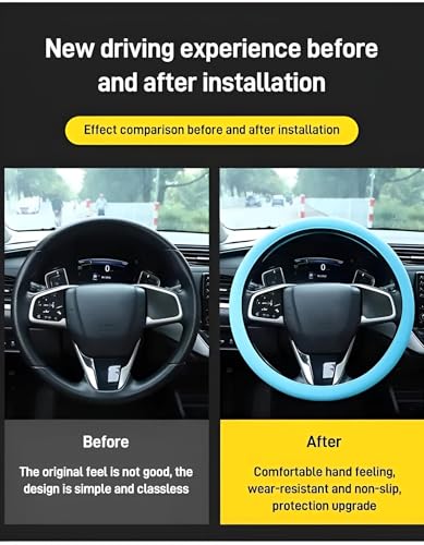 - [تجربة قيادة محسنة]: مع غطاء عجلة القيادة هذا، استمتع بتجربة قيادة أكثر راحة وتحكمًا. يقلل تصميمه من الانزلاق ويعزز الإمساك، مما يسمح بتحكم أفضل في السيارة، وهو أمر ضروري للسفر اليومي والرحلات الطويلة على الطريق.
