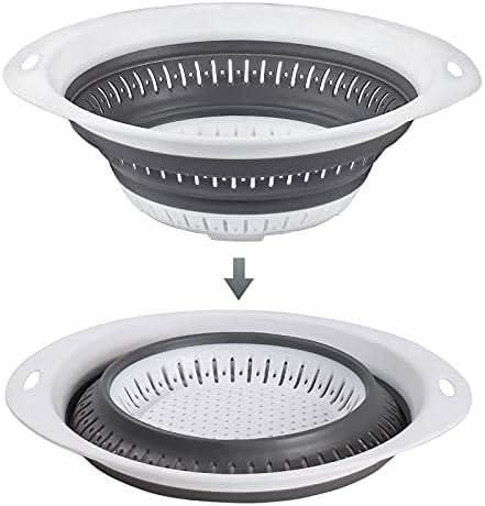 Generic - جيني مصفاة سيليكون ووعاء بخار، مادة حرارية امنة غذائيًا، تصميم قابل للطي لمقاسات الاواني المتعددة، للخضروات، ابيض ورمادي