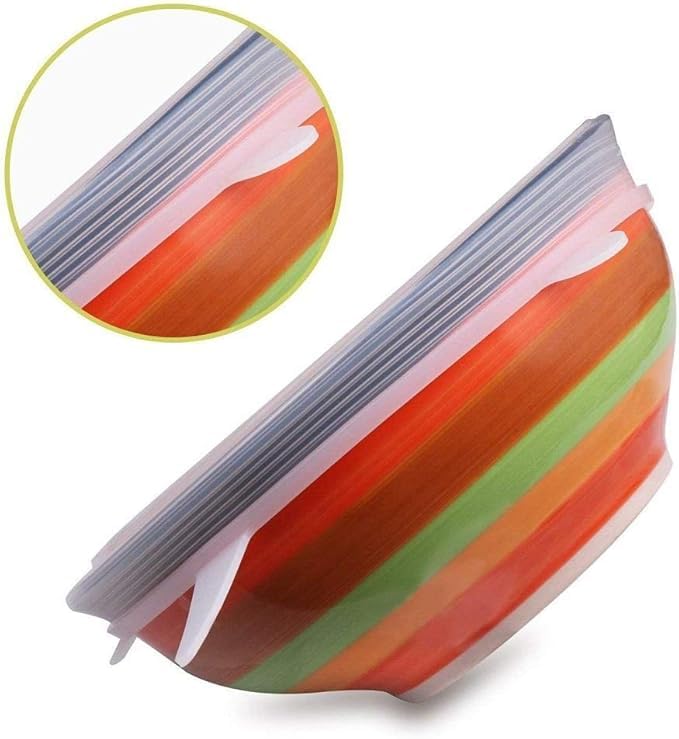 - قلل من هدر الطعام واستخدام البلاستيك عن طريق اختيار أغطية السيليكون القابلة لإعادة الاستخدام هذه فوق الغلاف البلاستيكي الذي يُستعمل لمرة واحدة.