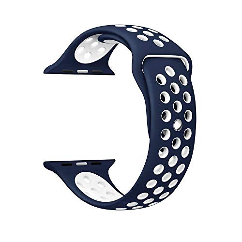 Generic - شريط ساعة سيليكون من لايجر متوافق مع ساعات أبل 38 ملم و 40 ملم اصدار 1 / 2 / 3 / 4 لون أزرق غامق و أبيض، للجنسين