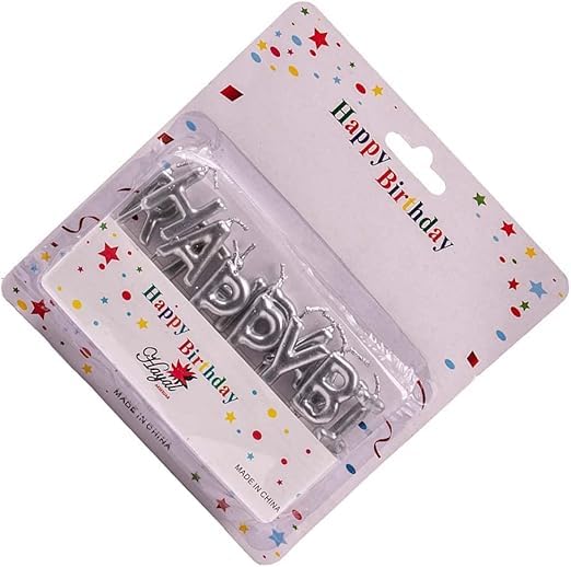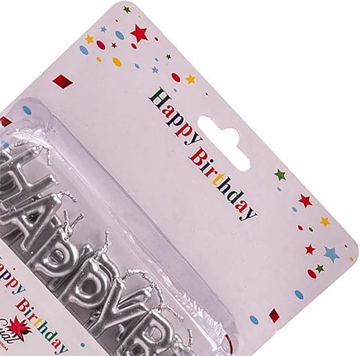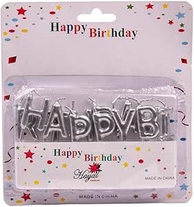 Generic - جيني شموع عيد ميلاد صغيرة مع حوامل - مجموعة من 13 شمعة فضية بتصميم حروف عيد ميلاد سعيد لتزيين الكيك ومستلزمات حفلات اعياد الميلاد