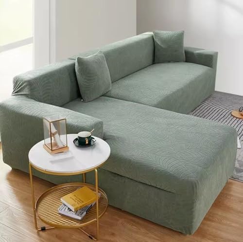 Generic - غطاء أريكة من قماش ليكرا انترلوك بطول 6 م، طقم من قطعتين، لون أخضر داكن