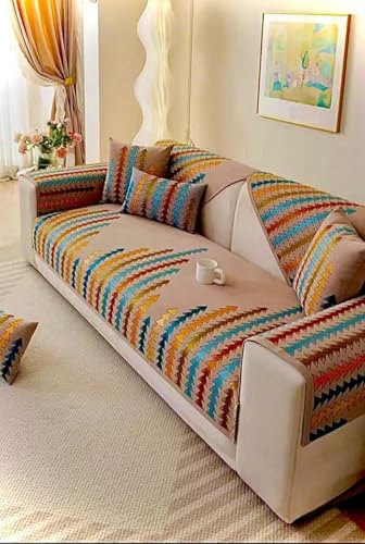 Generic - جيني طقم اغطية اريكة من 10 قطع مع اغطية مسند ظهر، اريكة كبيرة 190 × 70 سم، اريكة متوسطة 140 × 70 سم، كرسيين 70 × 70 سم (بني)