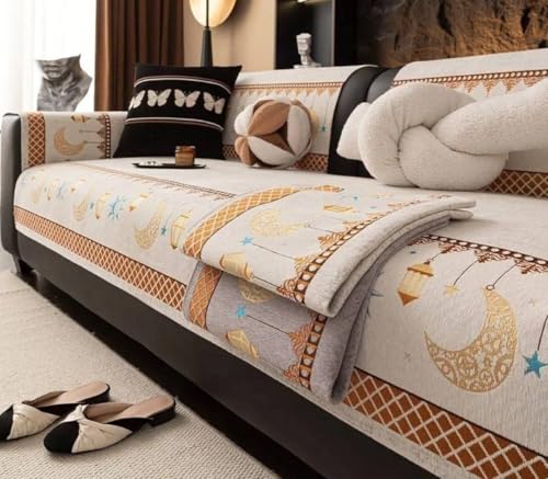 Generic - جيني طقم غطاء اريكة 190 سم مع 3 وسائد 75 × 75 سم، خامة ثقيلة الوزن، (اوف وايت) .اس ار
