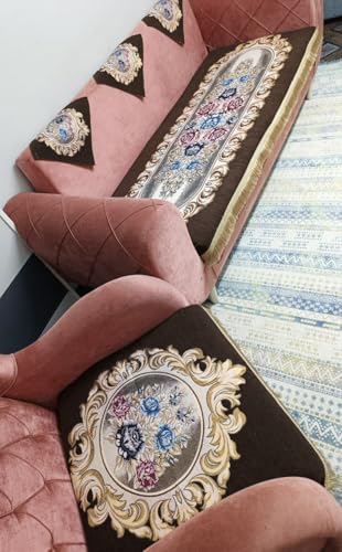 Generic - جيني طقم كنبة كتان بتصميم مطرز بالزهور، مجموعة من 10 قطع، اريكة كبيرة 185 سم × 75 سم، اريكة صغيرة 145 سم × 75 سم، 2 كرسيين بذراعين، 6 مناديل، (كافيه) .فلو