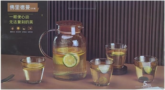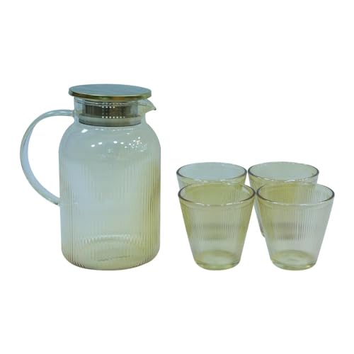 - طقم مكون من إبريق شرب زجاجي مع 4 أكواب