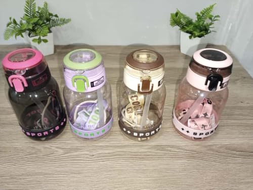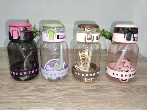 Generic - زجاجة مياه رياضية بتصميم خفيف الوزن للتدريبات والجيم والسفر والترطيب اليومي، 680 ملليلتر، وردي وأسود بني وبيج